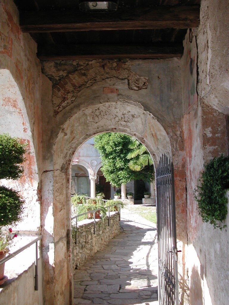 Alla Chiesa si accede attraversando un portico formato da quattro archi a tutto sesto, d’impronta rinascimentale. L’edificio attuale ha una struttura davvero singolare, frutto della fusione di tre cappelle, che erano originariamente distinte e che sono sorte in epoche differenti. Numerosi sono i cicli pittorici presenti all’esterno e internamente alla chiesa, che coprono un periodo che va dal XIV° al XIX° secolo. Arte e storia si integrano splendidamente in un quadro naturale tra i più suggestivi, quasi una balconata che si protende verso il golfo borromeo, Stresa e le isole.